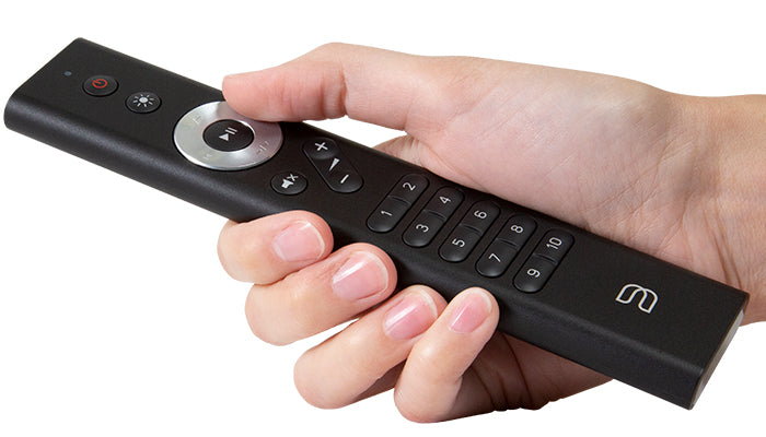 Control any Bluesound product in any room. The Bluesound RC1 Remote Control lets you point-and-control Players in different rooms and control music throughout the home without needing to use the BluOS Controller app on your phone or tablet every time. It centralizes command of all Bluesound Players and controls into one device with a simple IR connection that gives you the freedom and flexibility to easily control music in unique yet simple ways.