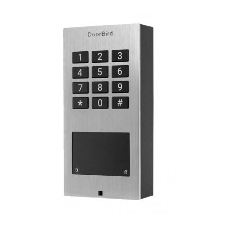The DoorBird A1121 is a compact, IP-based multi-technology access system that can also be installed as a stand-alone solution. It enables secure access control in areas where the installation of an IP video door station is not possible or desired, e.g. at back and side doors, garages and underground garages, storage and packing rooms or bicycle and machine rooms. It can also control elevators. The keypad is illuminated, so you can install the device even in an unlit environment. Thanks to its compact shape, the device can be easily installed on a door frame. The access control device is also ideal if you wish to create one-time or temporary access codes for visitors
