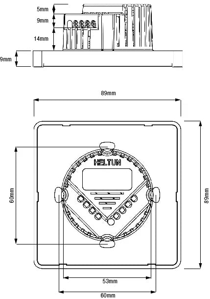 The HELTUN thermostat can be easily installed into any standard wall socket (rectangular or round type).