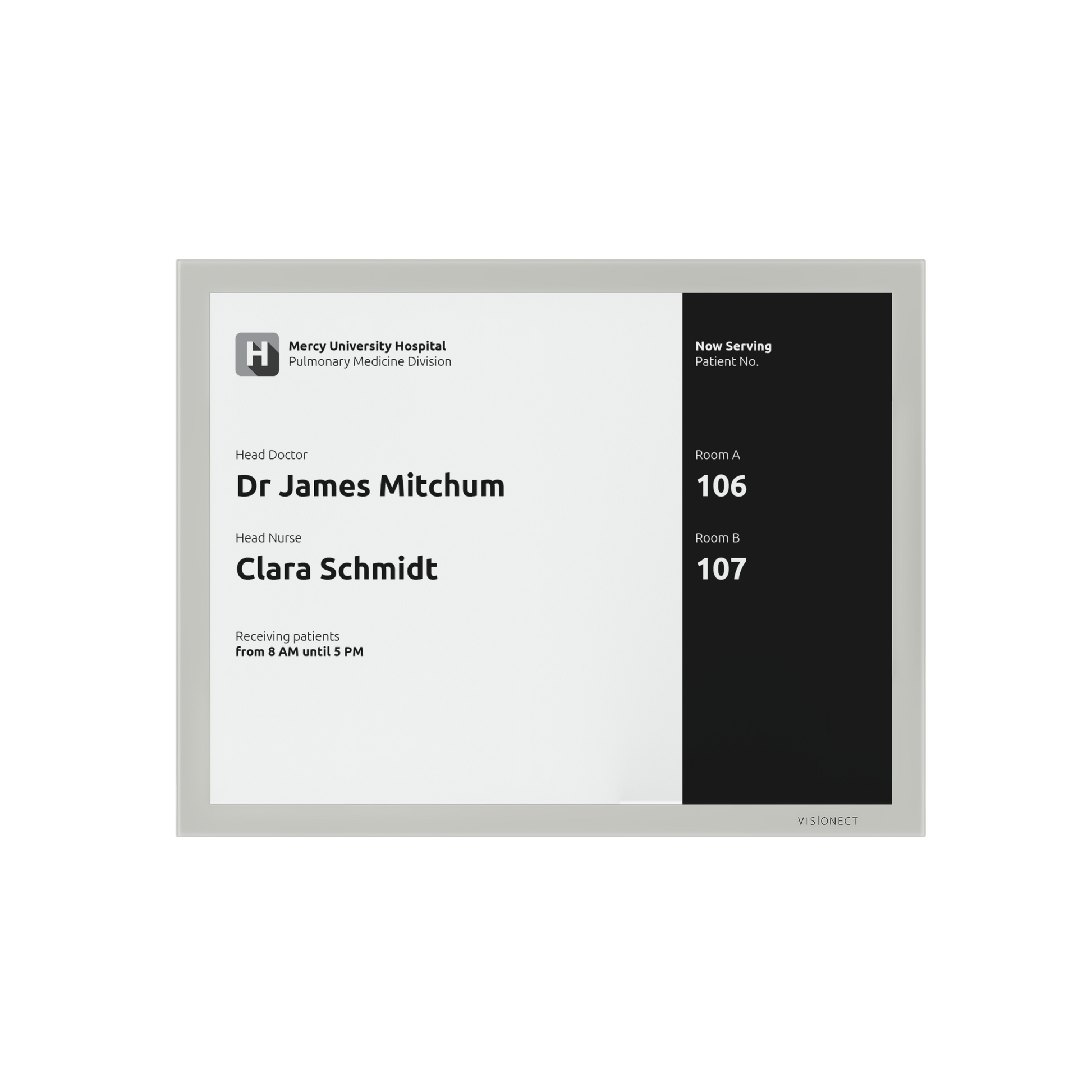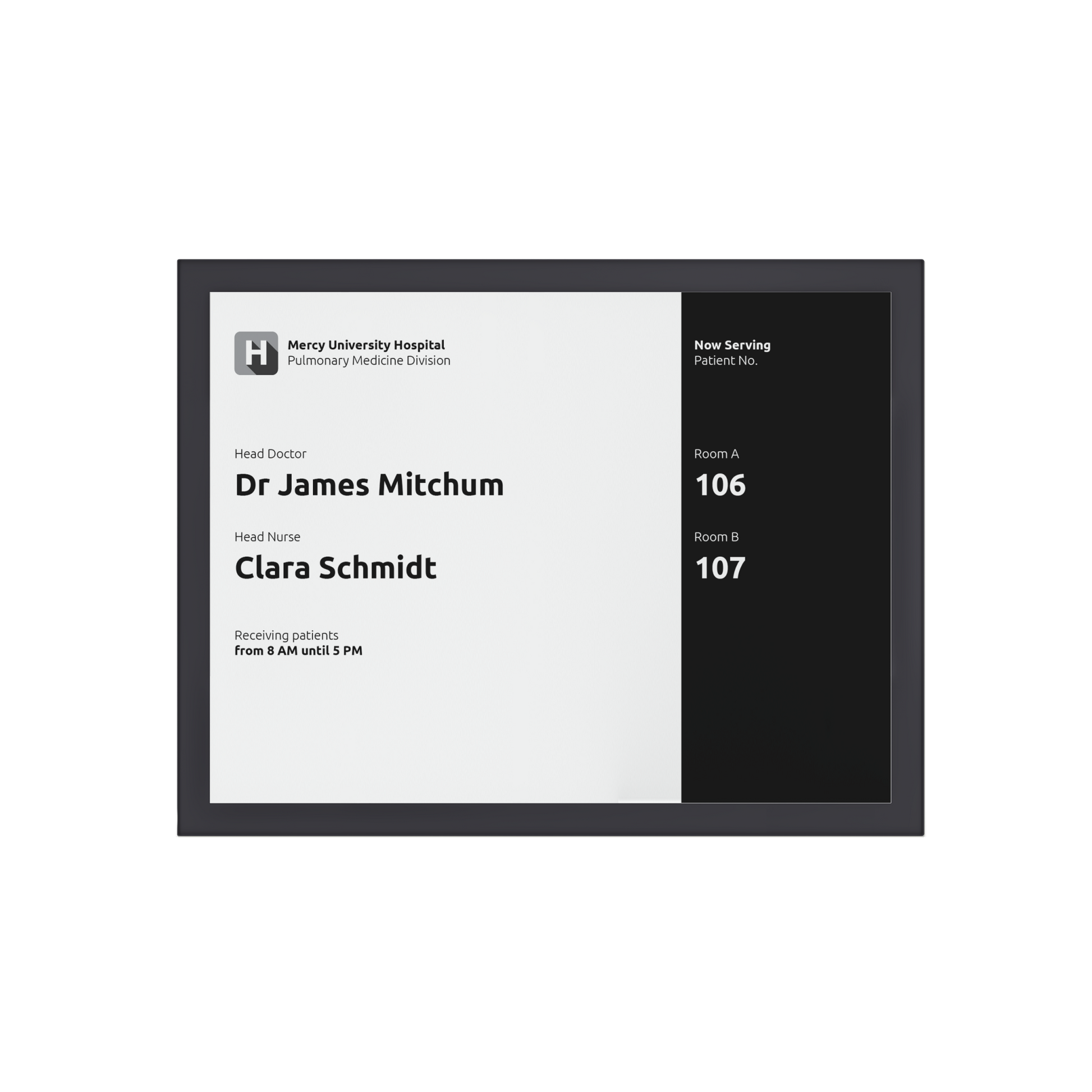 Ideal for delivering room scheduling and a multiple-room overview. This 13-inch display enhances the management of large conference rooms and boardrooms. It’s an ideal solution everywhere a room overview is needed.