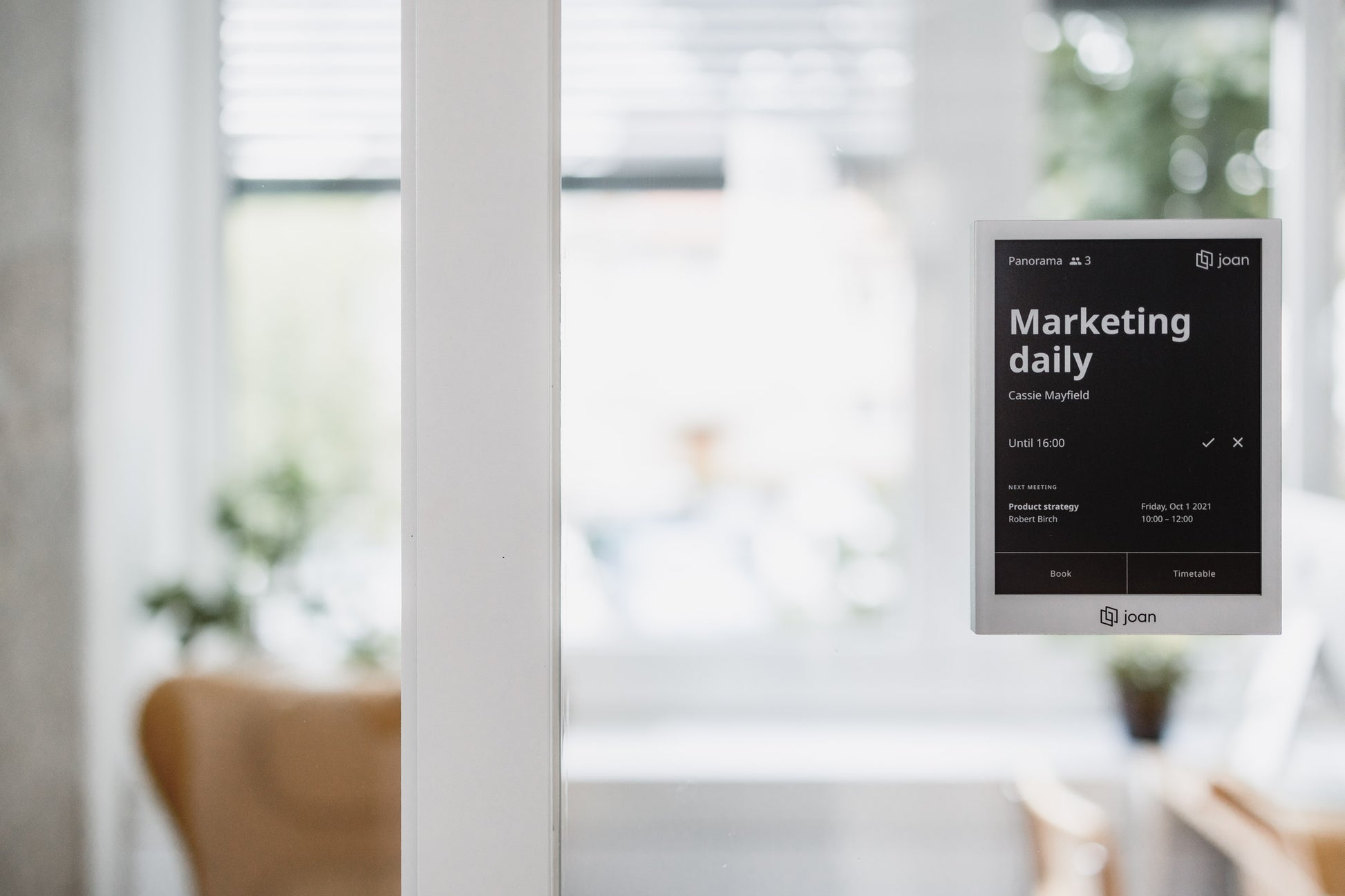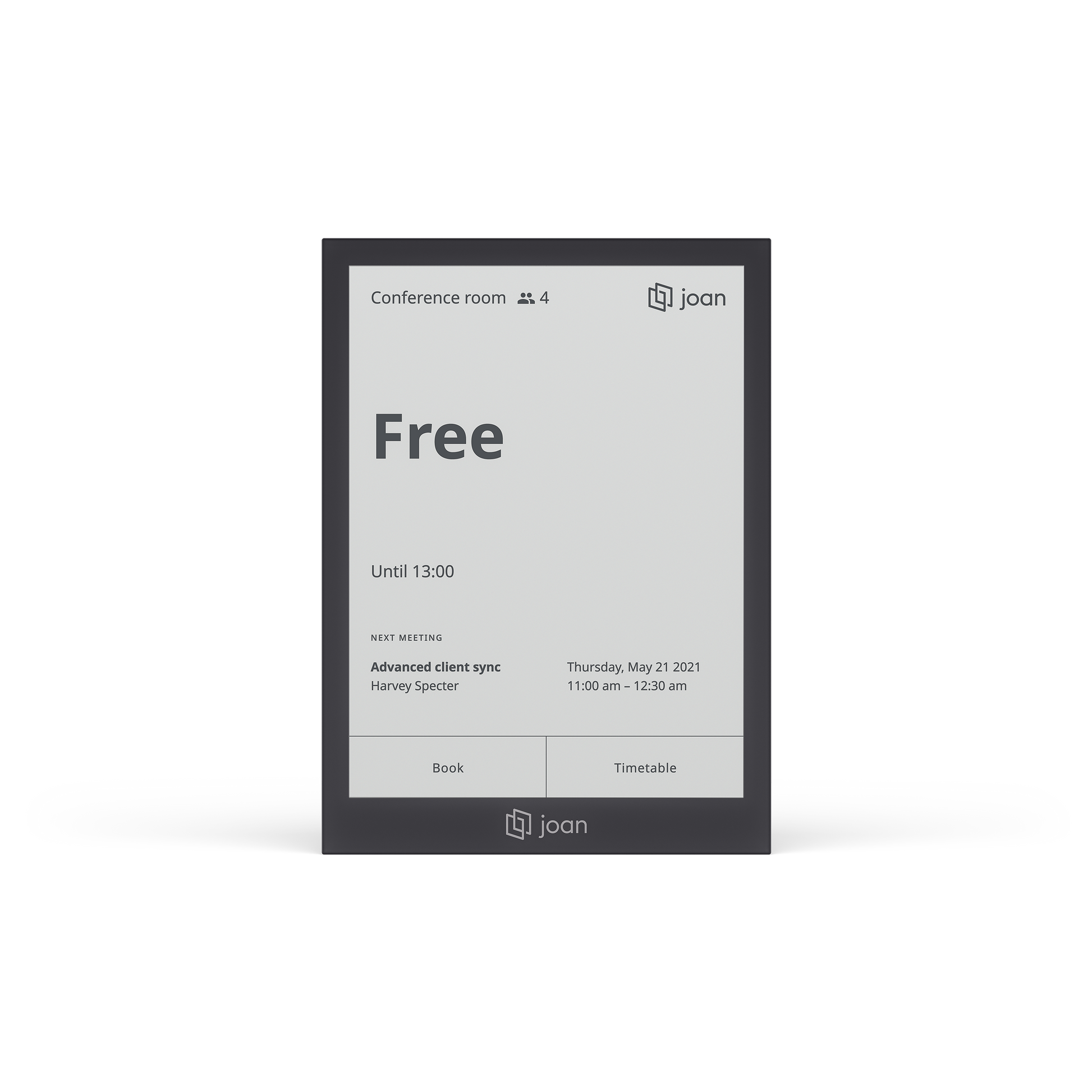 Easily handle up to 100 rooms, and enjoy the flexibility of swapping between them seamlessly. Joan 6 Pro meeting room display instantly updates with the new room’s information, ensuring a smooth transition.